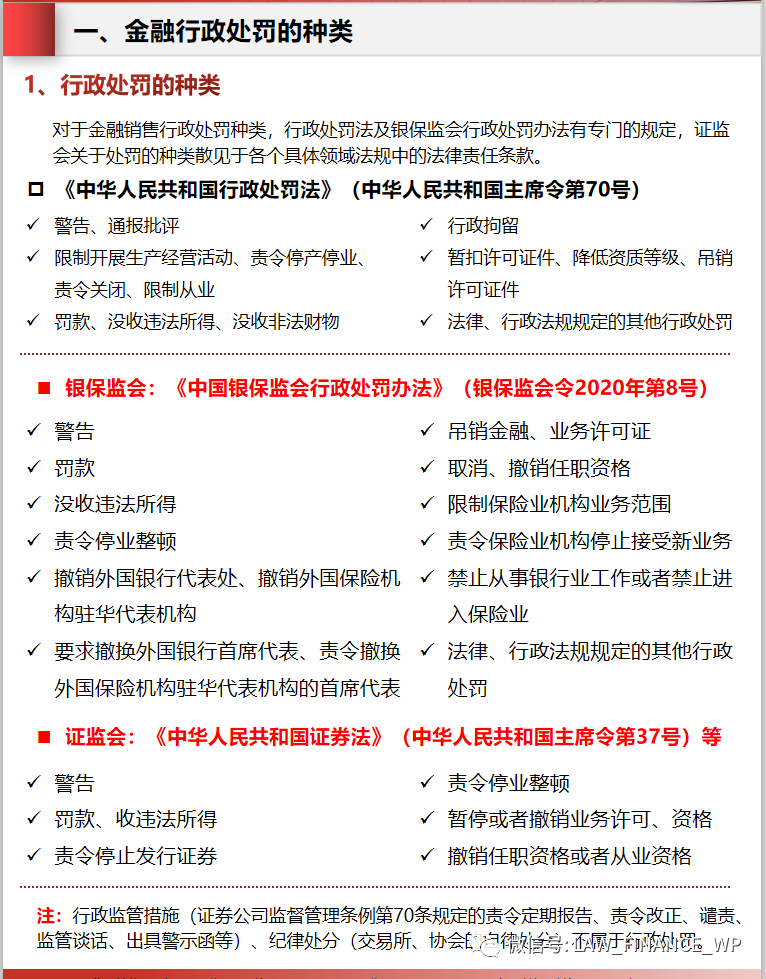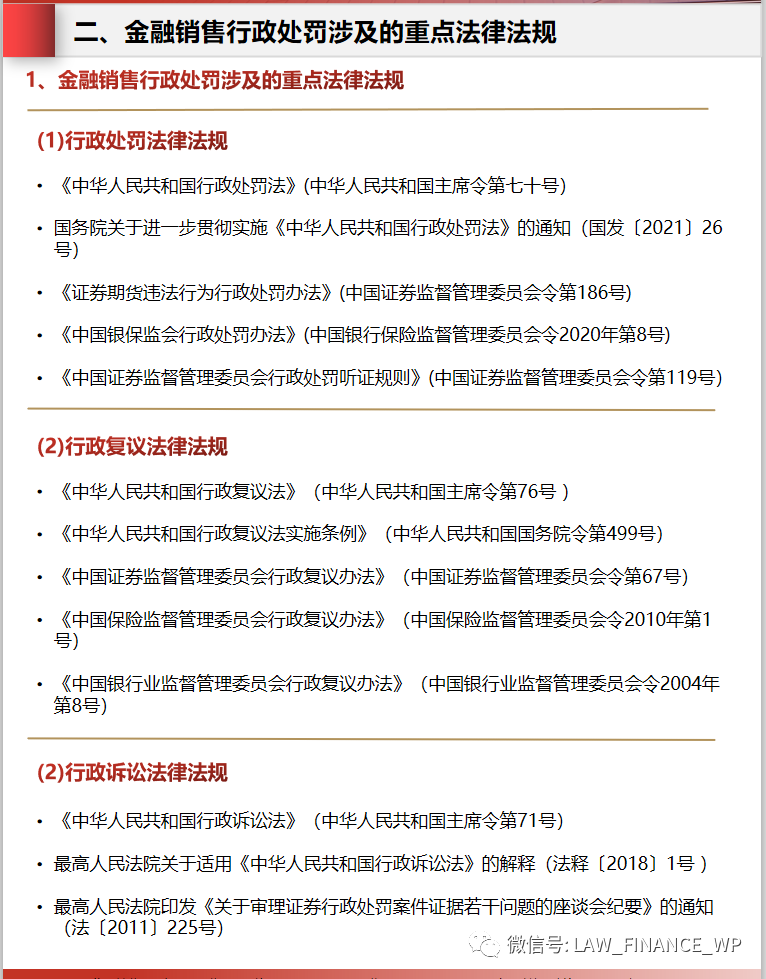 二、金融銷售行政處罰涉及的重點法律法規