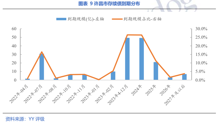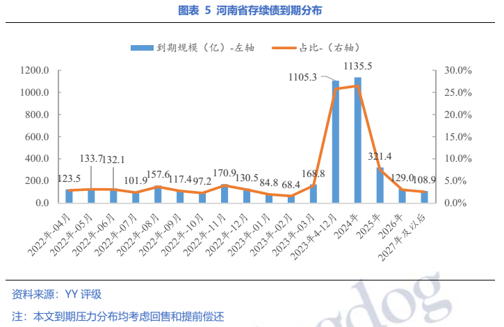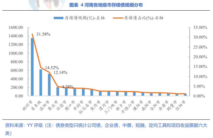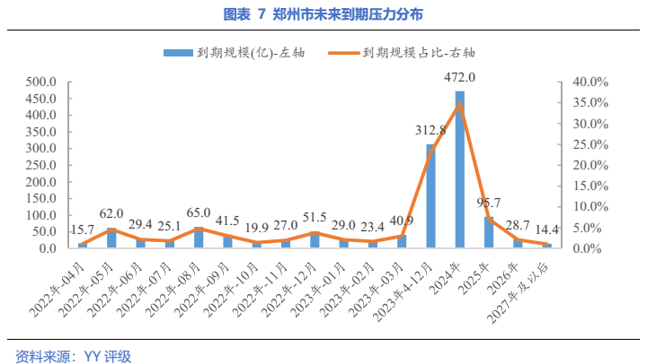 全省一年內(nèi)到期債券占34.7%,鄭州占比最高,近30%