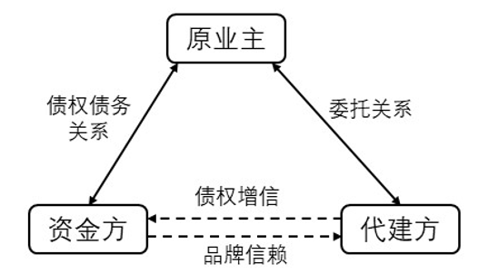 (2)代建方投入意愿較強而引入資金方。在過去幾年中,部分房企為沖規(guī)模,往往在忽視項目客觀資質(zhì)的情況下大量獲取項目,而對于部分資質(zhì)較差的項目代建方往往以為通過“融資代建”的模式可以最大限度隔離風(fēng)險,因而利用自身商業(yè)信譽人為強行引入資金方。在這種情形下,資金方基于代建方商業(yè)信譽背書而投入的可能性即大大增加。