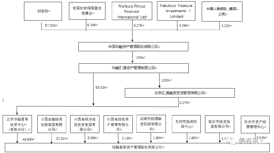 華融晉商成立于2016年2月,于2016年10月8日獲得中國(guó)銀監(jiān)會(huì)批準(zhǔn)的不良資產(chǎn)轉(zhuǎn)讓資格。根據(jù)“20華融晉商CP001”募集說明書公開的信息,華融晉商的股東數(shù)量較多,第一大股東和第二大股東分別是中國(guó)華融資產(chǎn)(持股48.88%)和山西金控(持股32.91%),但公司均未納入大股東的合并范圍,目前無實(shí)際控制人。