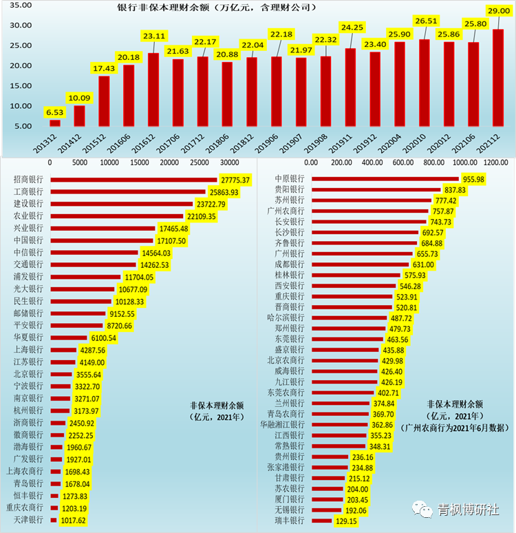 1、非保本理財(cái)余額超過(guò)1000億元的銀行有29家,這29家銀行的非保本理財(cái)余額合計(jì)達(dá)到25.66萬(wàn)億,占全部銀行業(yè)理財(cái)?shù)谋壤哌_(dá)88%以上。