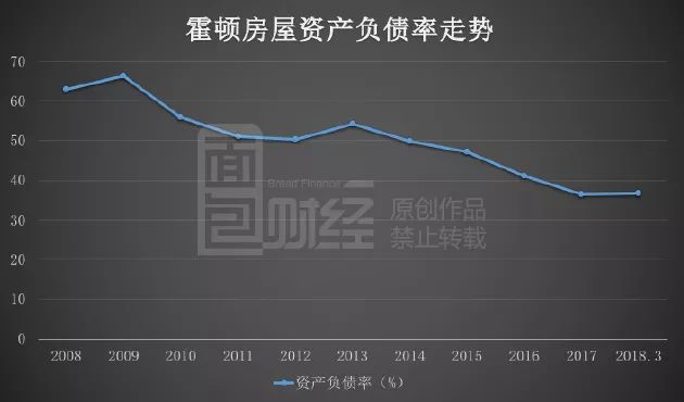 其中,霍頓房屋的資產(chǎn)負(fù)債率降幅最大,其當(dāng)前的負(fù)債率水平在同行中也處于低位,具體走勢(shì)如下: