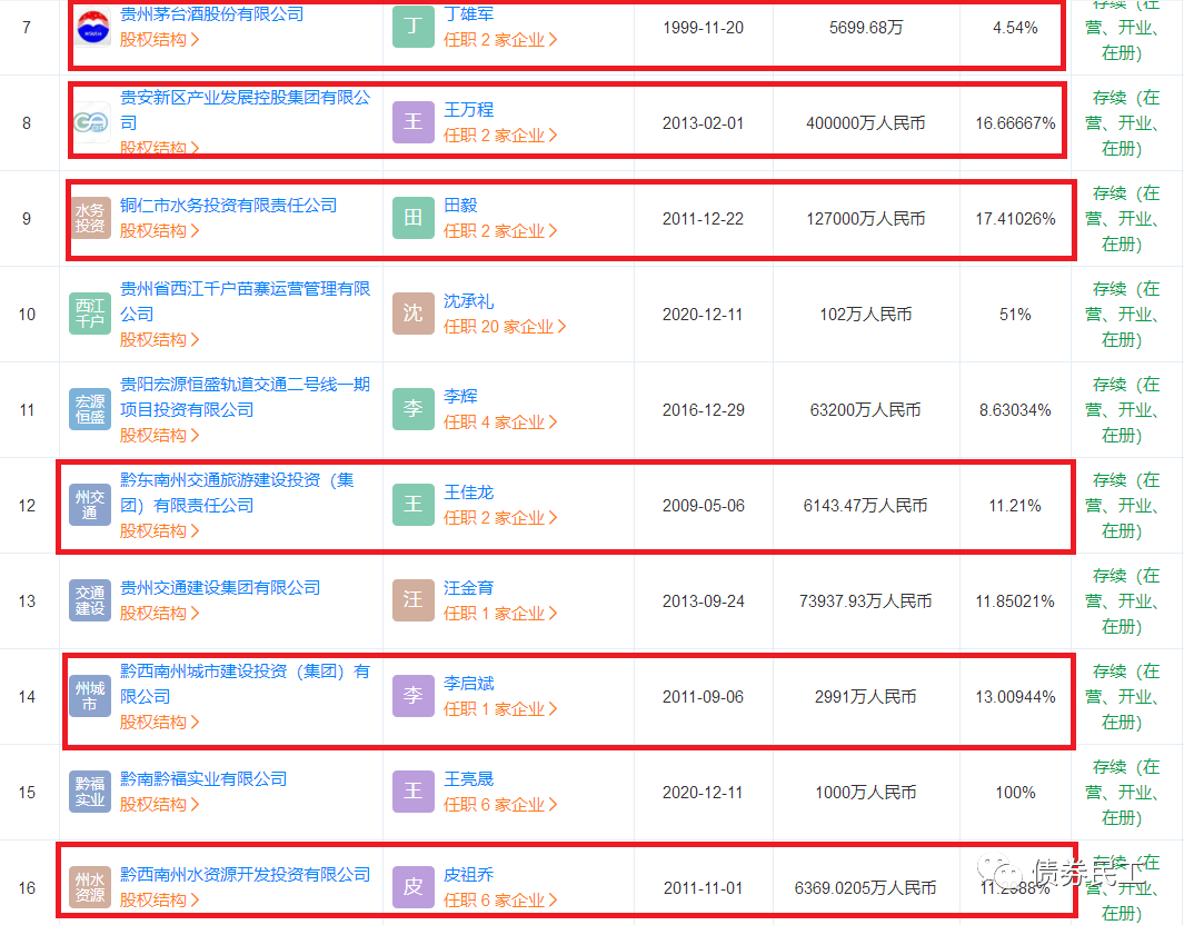 3、2021年12月21日,貴州國(guó)資公司成為黔東南州交通旅游建設(shè)投資(集團(tuán))有限責(zé)任公司(中誠(chéng)信國(guó)際和中證鵬元主體信用等級(jí)AA,實(shí)際控制人黔東南州國(guó)資委)持股比例為11.21%的股東。