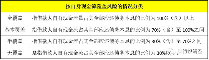 2013年銀監(jiān)會發(fā)布的《關于加強2013年地方政府融資平臺貸款風險監(jiān)管的指導意見》(銀監(jiān)發(fā)(2013)10號)根據融資平臺自身現(xiàn)金流覆蓋情況將融資平臺分為全覆蓋、基本覆蓋、半覆蓋和無覆蓋等四類。當然這一分類方式是動態(tài)調整的,相當于對融資平臺進行動態(tài)評級。具體如下:
