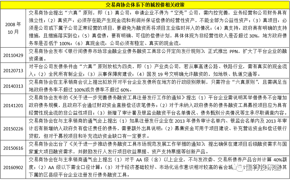 相較而言,城投債在銀行間市場發(fā)行債務融資工具受到的面上約束可能是最少的,具體來看城投債發(fā)行中票、短融等債務融資工具主要受到“六真”原則的約束,即真公司、真資產、真項目、真支持、真償債、真現(xiàn)金流。
