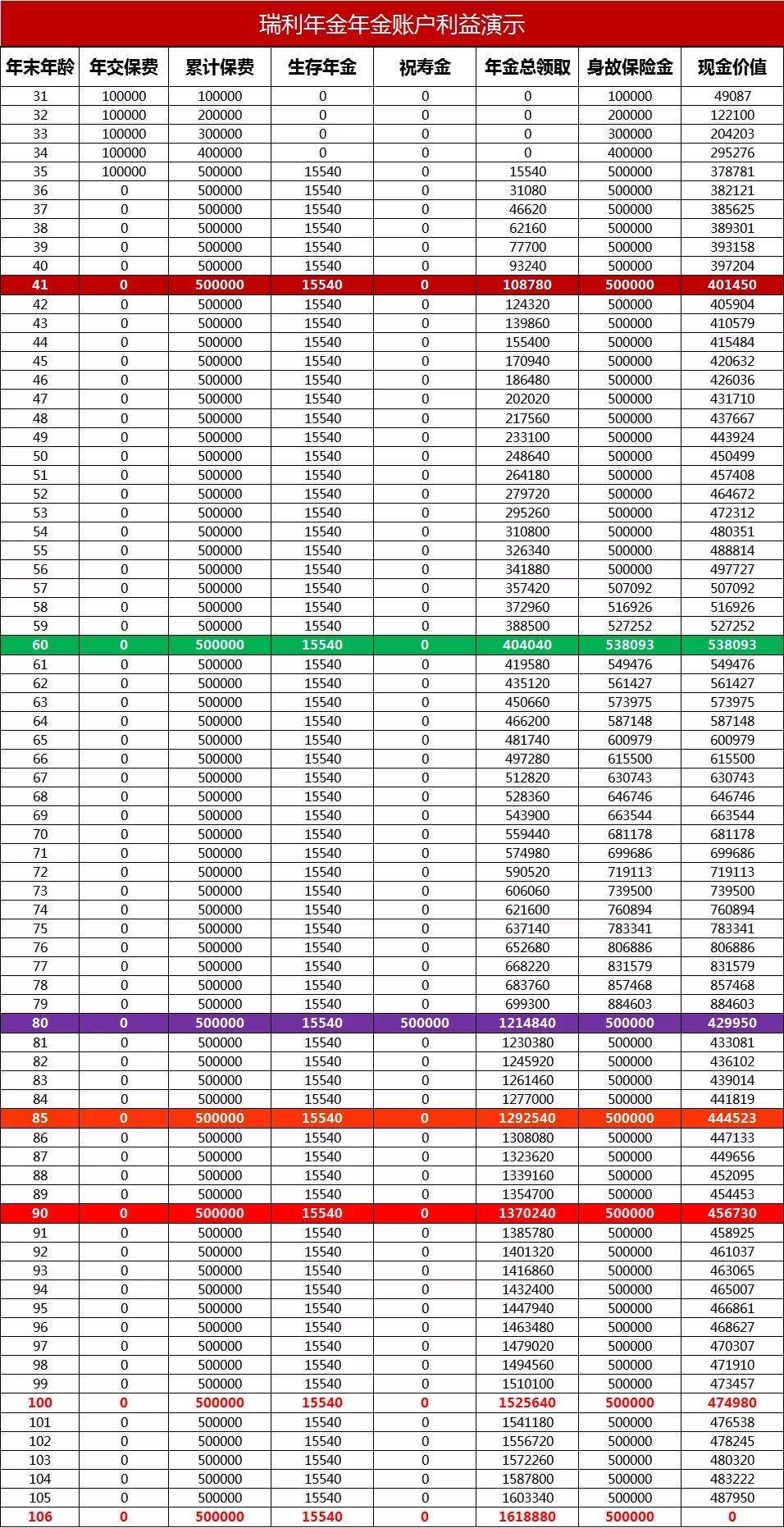 老王80歲時,可領取所有的已交保費,也就是50萬元,之后每年繼續(xù)領取15540元。