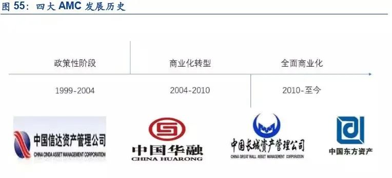 1999年,受前一年亞洲金融風暴的沖擊,四大國有銀行堆積了大量的不良資產。為化解金融系統風險,由財政部出資100億元,借鑒國外銀行類不良資產處置方式,成立了信達、華融、東方和長城四家全國性AMC,分別對口建行、工行、農行和中行。
