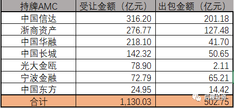 2.4、持牌AMC收包、出包金額對比分析(單位:億元)