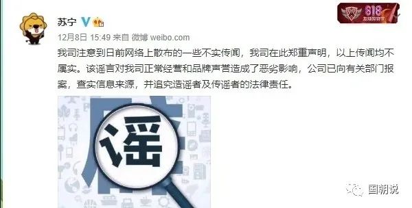 事實(shí)上,早在去年12月份,就有傳聞蘇寧資金鏈斷裂,銀行貸款面臨違約。蘇寧控股還特地通過(guò)官方微博進(jìn)行澄清: