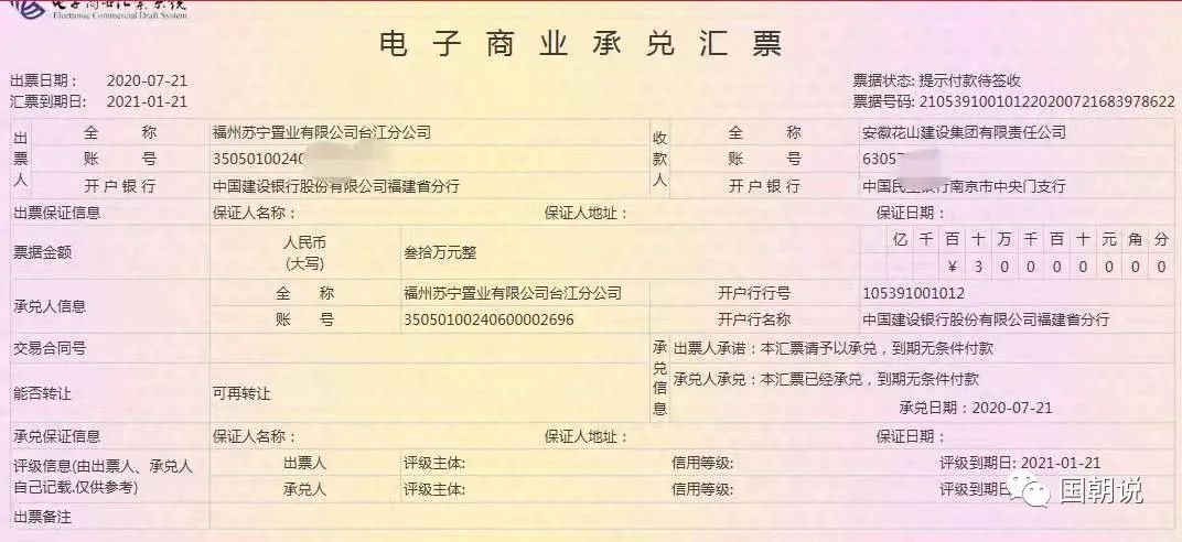 雖然,蘇寧置業(yè)很快補(bǔ)繳了稅款,不過(guò)這個(gè)也給我們提了個(gè)醒。2020年下半年,市場(chǎng)上就陸續(xù)傳出蘇寧置業(yè)子公司的商票發(fā)生逾期的事件。