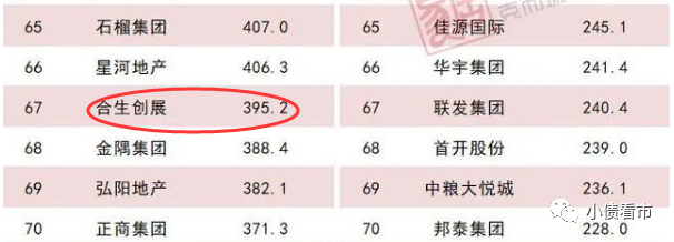 據(jù)克而瑞數(shù)據(jù),去年合生創(chuàng)展以395.2億操盤金額位居房企第67位,體量上看屬于中小型房企。