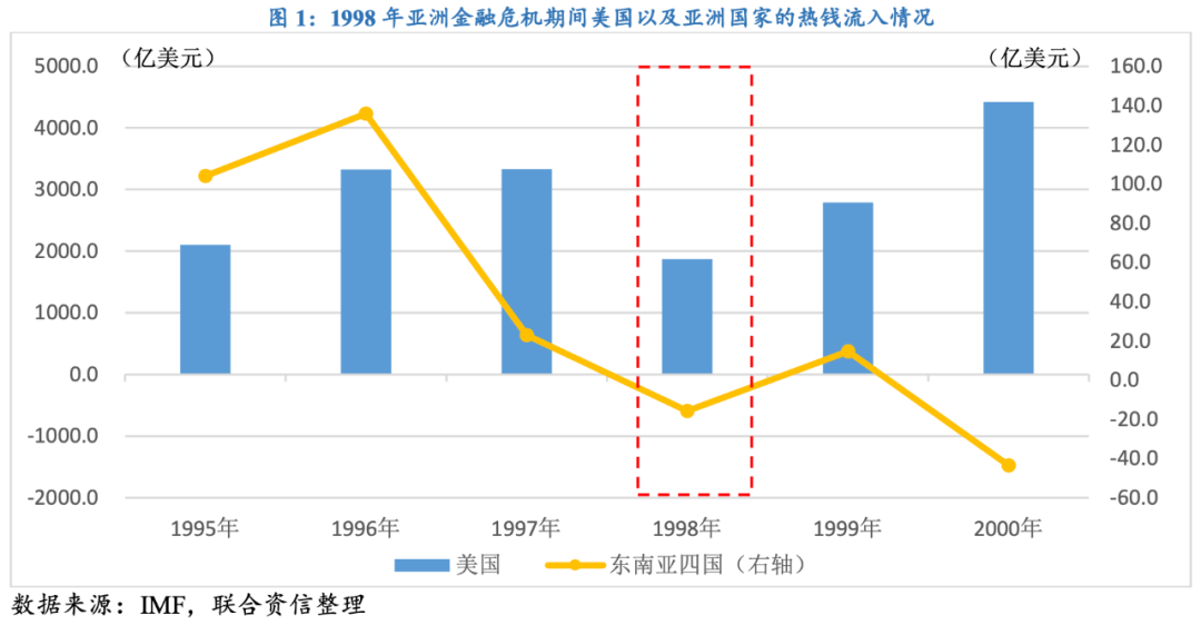 美聯儲加息一直都是國際金融不穩定因素的重要來源,勢必會影響全球金融市場的均衡以及國際資本流動的穩定。美聯儲收緊貨幣政策會加速國際投機熱錢回流美國市場,對其他國家(尤其是經濟結構相對脆弱的新興經濟體)的資本市場造成巨大沖擊,導致這些國家的長期投資難以持續,增加其發生金融危機的風險。比如1998年亞洲金融危機,在亞洲“四小龍”和“五小虎”的經濟奇跡下,亞洲國家金融自由化步伐加快,造成短期投機資本大量流入,1995年流入印尼、泰國、馬來西亞以及菲律賓的熱錢合計超過100億美元,創歷史新高。隨后,美聯儲重回加息周期帶動美元幣值逐步走高,導致大量短期資本撤離亞洲資本市場并重返美國市場,美國熱錢流入規模由1,875.7億美元(1998年)增長至4,419.7億美元(2000年),漲幅超過135%;但東南亞四國則由資本流入轉為資本流出,1998年合計資本流出15.8億美元,在1999年小幅復蘇后,2000年再度資本流出合計超過40億美元。資本外逃導致印尼盧比、泰銖、馬來西亞吉林特以及菲律賓比索以及在1998年期間分別大幅貶值150%、89%、57%以及55%,加劇了東南亞各國的金融市場動蕩和實體經濟惡化。股市泡沫和地產泡沫被刺破后,1998年泰國、菲律賓、馬來西亞和印尼等國的上市公司市值相當于GDP的比值分別較上年大幅下滑38個、52個、210個以及27個百分點。