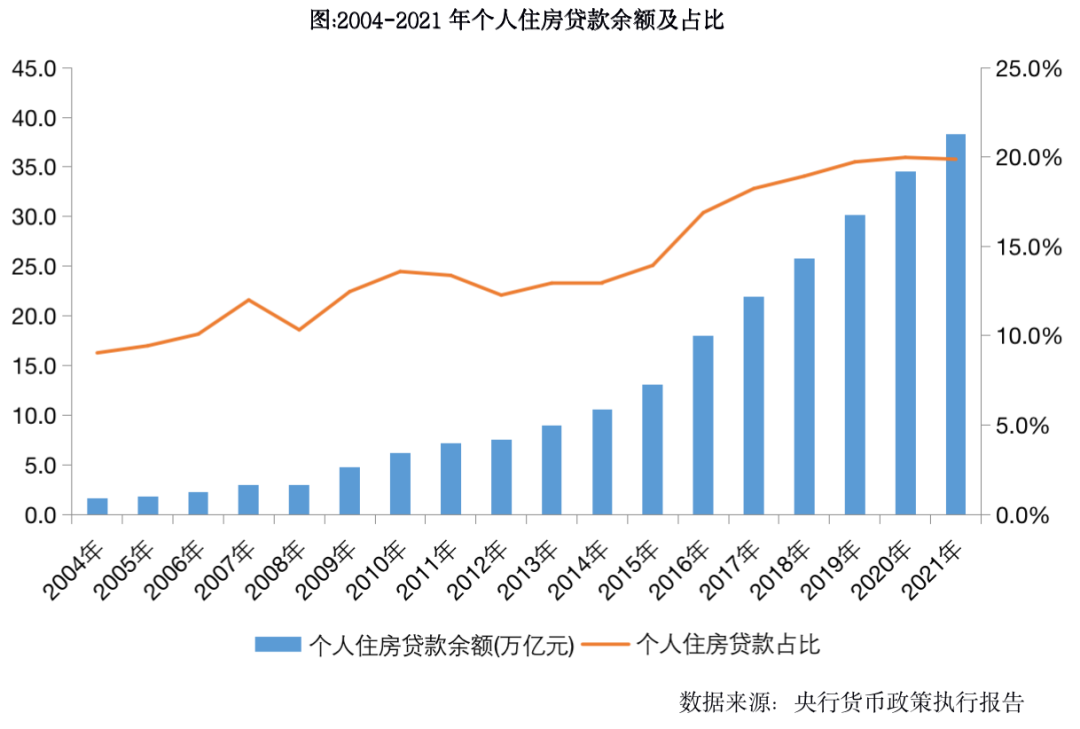 第三,居民過度加杠桿購房。2015年以來,基于各線城市房價輪動上漲的正向激勵效應,很大程度上刺激居民超前購房消費,表現于居民不斷加杠桿購房,杠桿率持續攀升,市場購買力難免透支。據央行貨幣政策執行報告顯示,截至2021年末,個人住房貸款余額38.3萬億元,占各項貸款余額的比重達到19.9%。