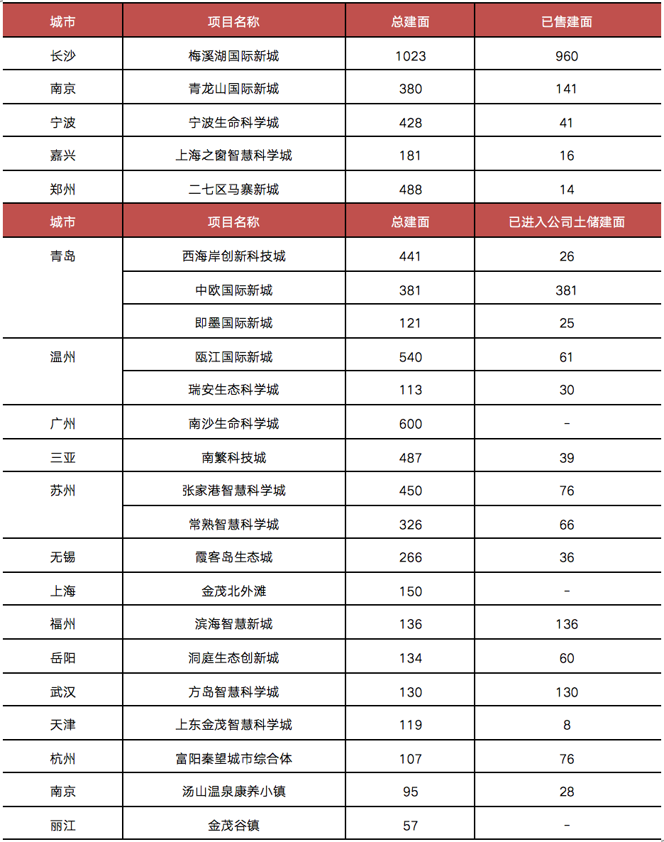表:中國(guó)金茂已落地城市運(yùn)營(yíng)項(xiàng)目(單位:萬(wàn)方)