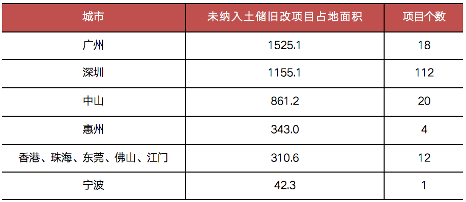 佳兆業(yè)未納入土儲(chǔ)的舊改項(xiàng)目情況(萬(wàn)平方米)