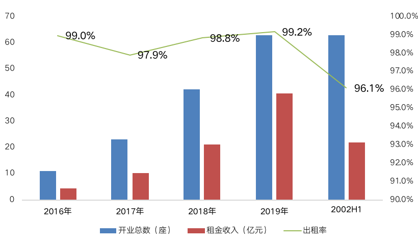 開(kāi)業(yè)及營(yíng)收、出租率情況