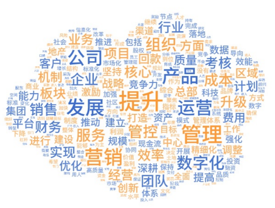 具體舉措中,提及頻次最高的幾個關鍵詞為產品、營銷、運營和數字化。由此可見,這四個方面是正是房企當前調整、優化、變革的主要切入點。”