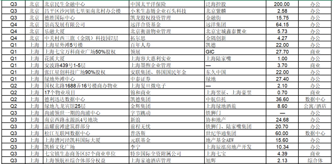 工業物業成交錄得大幅提升,占比15%,尤其是錄得多筆物流資產包交易。受益于在線新經濟而加速發展的數據中心連續三個季度錄得成交。