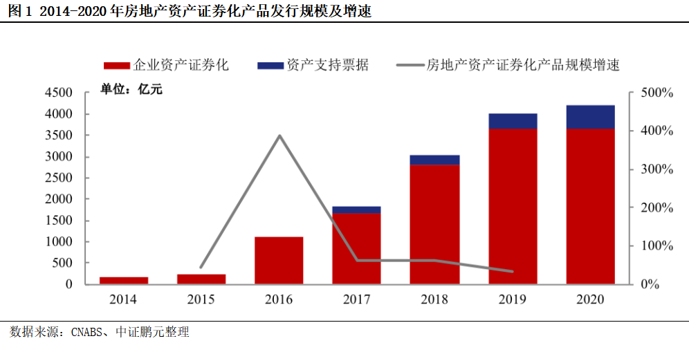 自2016年以來,房地產(chǎn)行業(yè)監(jiān)管政策持續(xù)收緊,房地產(chǎn)企業(yè)傳統(tǒng)融資渠道受到嚴(yán)格監(jiān)管。受益于房企融資需求增大,以及企業(yè)ABS市場擴(kuò)容,房地產(chǎn)行業(yè)資產(chǎn)證券化產(chǎn)品發(fā)行大幅提速,有效拓展了房企的融資渠道。截至2020年12月29日,房地產(chǎn)行業(yè)資產(chǎn)證券化產(chǎn)品累計(jì)發(fā)行規(guī)模超過1.4萬億元,已成為房企重要的融資渠道之一。