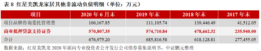 案例7:紅星美凱龍家居集團(tuán)股份有限公司(以下簡稱“紅星美凱龍”)2020年半年報(bào)中,CMBS列示在“其他非流動負(fù)債”下“商業(yè)地產(chǎn)抵押貸款支持證券”科目。