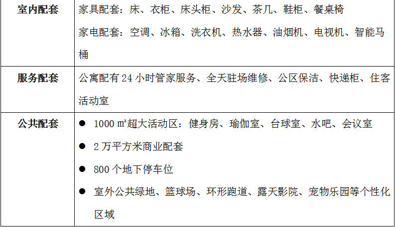 • 社區配套:會展項目配置了2.2萬平方米的商業街區服務于整個租賃社區,包括主力零售店,連鎖餐飲街、社區服務館等業態,目的是形成一個社區自給自足的生活圈。
