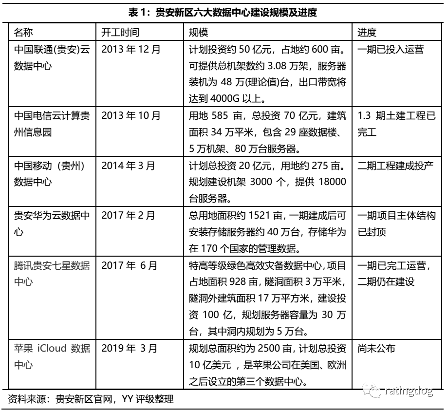 貴安新區(qū)目前重點(diǎn)項(xiàng)目有三大運(yùn)營(yíng)商超大型數(shù)據(jù)中心以及騰訊、華為、蘋(píng)果三大數(shù)據(jù)中心。