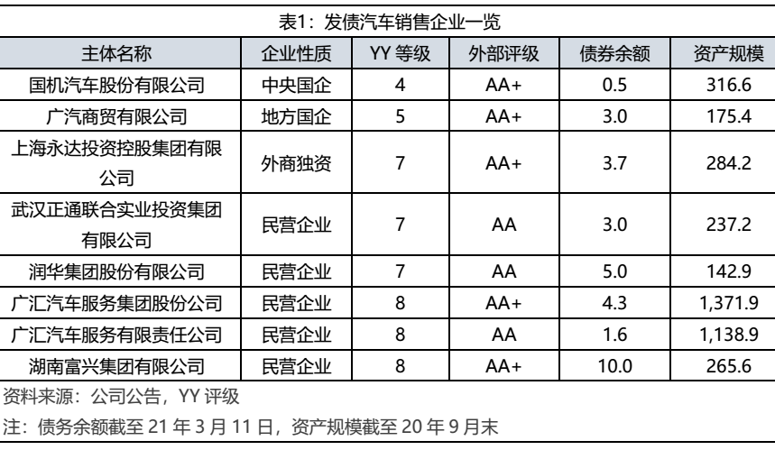 2.1 汽車銷售行業(yè)發(fā)債主體梳理