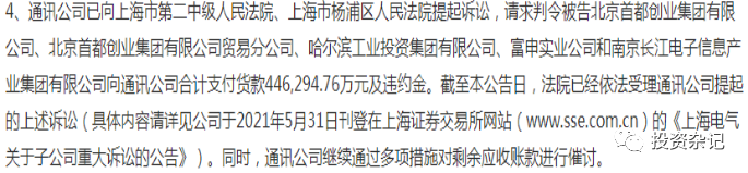 第五,欠款的來頭也不小,單純書面研究也不清楚為啥拖欠賬款。根據(jù)公司公告,前幾大欠款方來頭都比較大,除了富申實業(yè)公司是民企外,首創(chuàng)集團是北京的大國企,哈爾濱工業(yè)投資集團是哈爾濱當?shù)貒螅暇╅L江電子信息產(chǎn)業(yè)集團是中電熊貓的子公司(在往上追溯是中國電子,實際控制人是國務院國資委)。民企欠錢也就罷了,如果這種大國企、大央企在正常的商業(yè)往來中也欠錢是有點不可思議。所以有種可能就是這些央企、國企被騙了,根本不存在底層的商業(yè)交易。