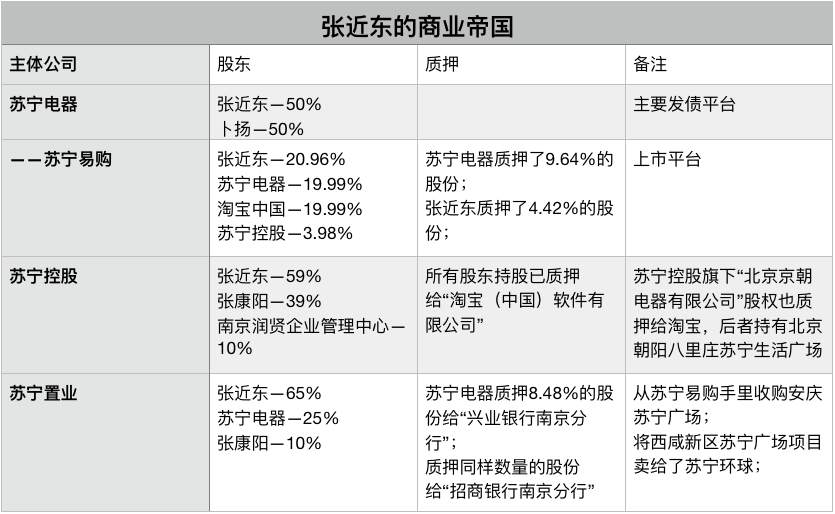 張近東和蘇寧電器副總裁卜揚各自控股50%的蘇寧電器,另外持有蘇寧易購14.21%的股份。