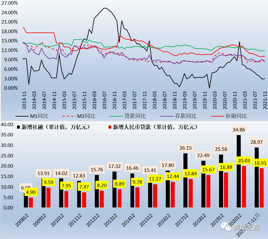 2、11月人民幣貸款、企業中長期貸款等反映實體經濟融資需求的指標依然偏弱,而社融、M2與人民幣貸款數值亦明顯低于預期。