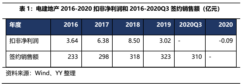 為此,電建地產(chǎn)股東也簽下了對賭協(xié)議。中國電建及中電建建筑承諾,電建地產(chǎn)在整個業(yè)績承諾期間(2020年-2023年)內(nèi)累積合計實現(xiàn)的扣除非經(jīng)常性損益后的稅后凈利潤不低于28.26億元,即公司平均每年需要實現(xiàn)7.065億元的扣非凈利潤,而如表1,公司2019年扣非凈利潤僅3.02億元,且2017、2018年拿地成本普遍較高,導致此后幾年盈利空間可能被壓縮,疊加當前房地產(chǎn)行業(yè)整體以穩(wěn)為主的政策基調(diào),要完成協(xié)議目標壓力不小。如果電建地產(chǎn)未能如約完成,則中國電建、中電建建筑履行業(yè)績補償義務,2020年的業(yè)績顯著是需要補償。