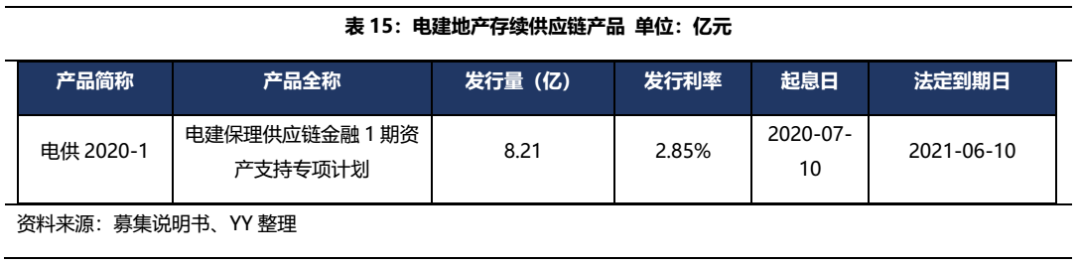 公司目前有1個處于存續(xù)期的供應鏈ABS,發(fā)行量為8.21億元,發(fā)行利率為2.86%,將于2021年6月10日到期。