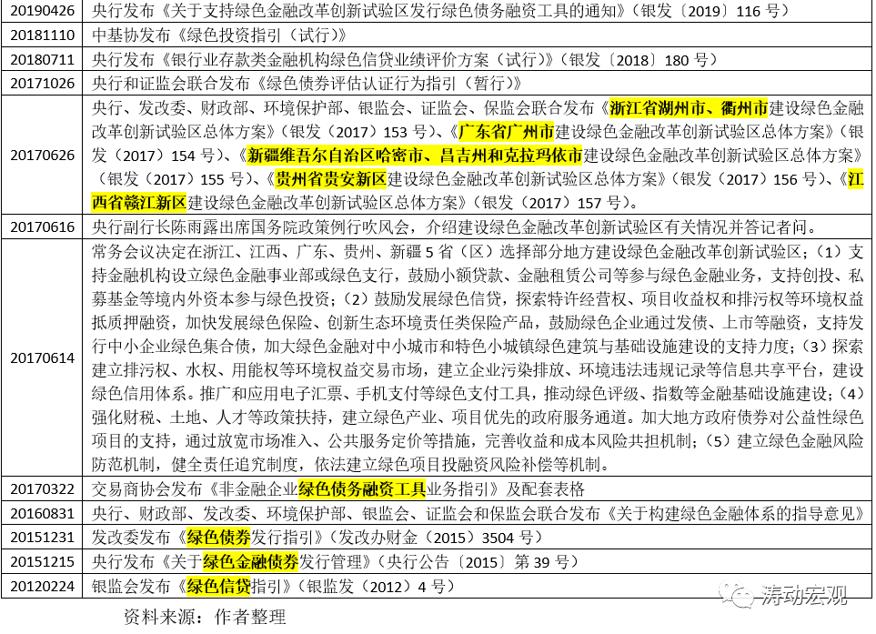 (三)2017年以來,國家先后批復浙江、江西、廣東、貴州、新疆、甘肅六?。▍^)九地開展了各具特色的綠色金融改革創新實踐,相關部門隨即發布了各綠色金融改革創新試驗區的總體方案。2021年月2日,央行、發改委和證監會聯合發布的《綠色債券支持項目目錄(2021年版)》亦成為金融機構開展綠色金融業務的指導性文件。