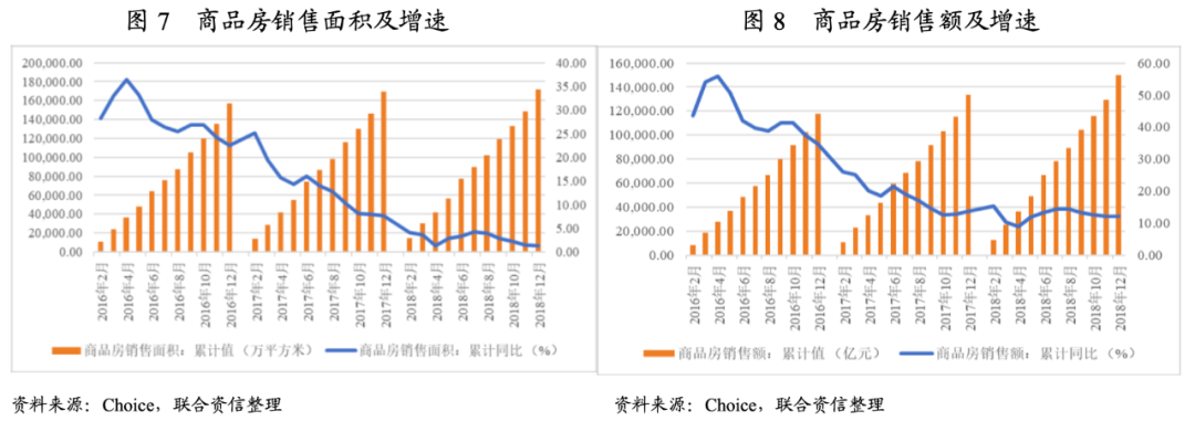從市場表現(xiàn)看,2018年全年,商品房銷售面積17.17億平方米,同比增長1.3%,商品房銷售額15.00萬億元,同比增長12.2%,銷售面積和銷售額均創(chuàng)新高,但全年增速創(chuàng)新低。