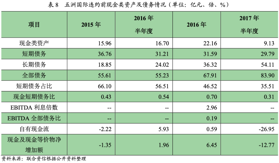 2018年7月5日,五洲控股已發(fā)生債務違約,控股股東雖然為五洲國際債務提供擔保,但自身收入下滑,盈利虧損,經(jīng)營活動現(xiàn)金流量凈額持續(xù)為負,自身償債能力不足,對五洲國際債務已無擔保能力。