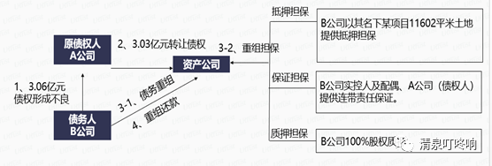 以某項目為例。在該項目交易結(jié)構(gòu)中,該資產(chǎn)公司以折價3.03億元收購了A公司對B公司3.06億元的不良非金債權(quán),然后再對該項目債權(quán)進行了期限、重組寬限補償金、擔(dān)保措施等要素重組。