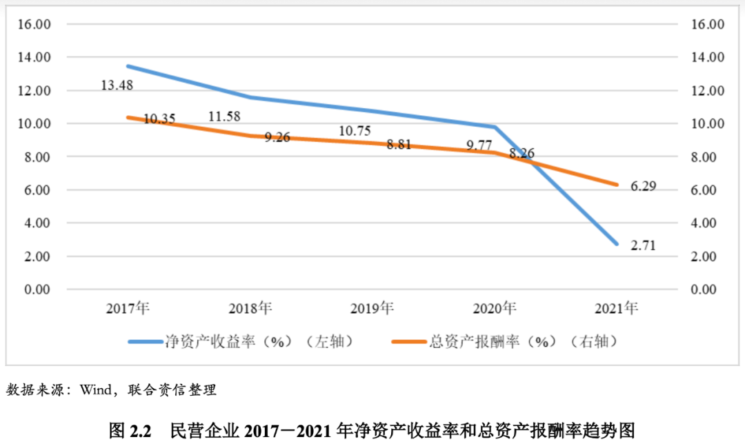 由于信用環境的惡化和信用能力的弱化,民營企業的正常經營受到較大的沖擊,反映在其自2018年以來,經營效率和盈利能力整體呈下降趨勢,且對未來預期減弱,在長期資產投資和研發支出方面出現較大的波動。鑒于數據的可得性,本報告選取我國滬深交易所上市民企以及發債民企作為樣本,并剔除了2017-2021年間數據不全的樣本,共獲得2740個有效民企樣本,本節均基于該樣本群進行分析。