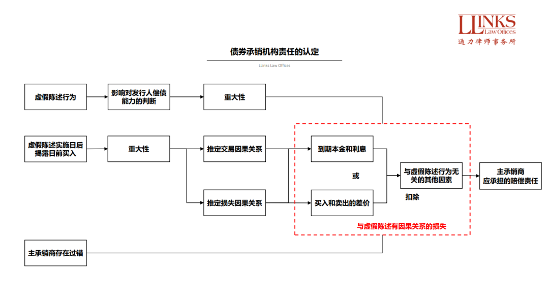 當然, 在“推定因果關系”的大前提下, 主承銷商也并非對交易因果關系一籌莫展, 因為在某些特殊而又不罕見的情況下, 主承銷商仍然有機會證明交易因果關系不成立。此前市場上頻繁出現的“結構化發行”就是極為典型的例子, 如果主承銷商有證據證明債券投資者購買債券是由于其和發行人簽署的“合作協議”, 那么中斷其購買行為和信息披露之間的因果關系, 因為無論信息披露如何, 債券投資者都會為了“返費”而購買債券, 類似的思路可以供主承銷商們參考。