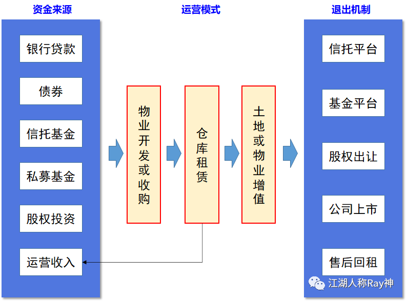 地產(chǎn)向來與金融就有著密不可分的關(guān)系,物流地產(chǎn)也不例外。在國際上,許多物流地產(chǎn)都是依托著各類基金獲得持續(xù)發(fā)展的能量的。比如全球最大的物流地產(chǎn)企業(yè)普洛斯,其背后就擁有美國、新加坡、日本等多只REITs及在北美、歐洲、亞洲多地的私募基金,并在國內(nèi)也發(fā)行過CMBS,正是因為如此才成就了其橫跨全球四大洲22個國家的3000多項物流資產(chǎn),總面積超過5000萬平方米。同樣的還有像豐樹、ARA,以及國內(nèi)的易商紅木等,無不是借助了金融渠道進行融資及退出,進而實現(xiàn)自身的規(guī)模化發(fā)展及持續(xù)盈利。