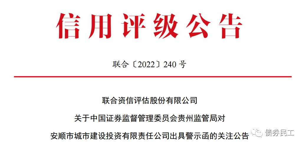 聯(lián)合資信評(píng)估有限公司已于2022年1月12日披露了對(duì)貴州證監(jiān)局對(duì)安順城建出具警示函的關(guān)注公告。