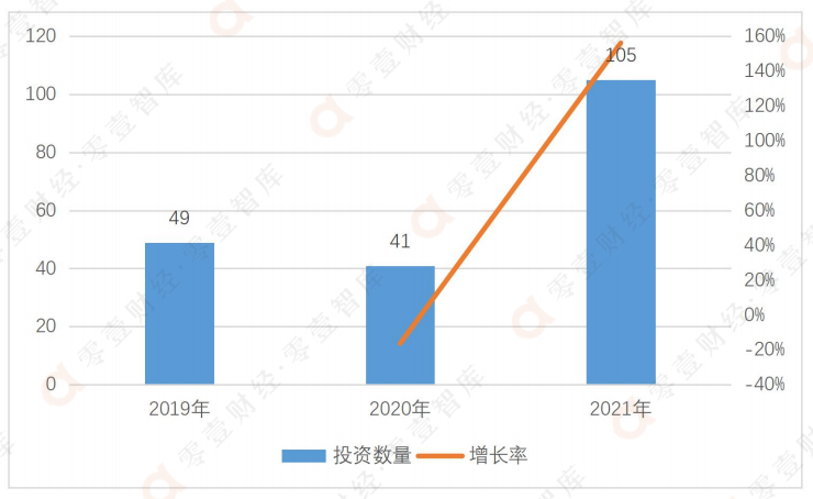 騰訊投資的投資領域涉及廣泛,投資企業(yè)也多為行業(yè)科技巨頭,文娛傳媒就包括了B站、快手等多家公司;在消費零售板塊,騰訊也涉及了美團、京東、拼多多等互聯(lián)網(wǎng)巨頭。騰訊投資在各領域都較為注重數(shù)字化以及信息化的投入,據(jù)零壹智庫不完全統(tǒng)計,近三年間(2019至2021年)騰訊投資投向數(shù)字科技企業(yè)的投資事件為195起,2019年和2020年數(shù)量相當,而在2021年其投資事件大幅上漲156%,至105件。