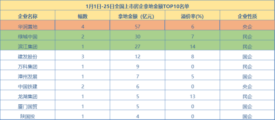 1月25日,易居研究院披露的《1月上市房企拿地排行》報告顯示,2022年年初至今,全國土地市場總體溫和平靜,僅有15家房企出手拿地,拿地金額為166億元,拿地熱情創下十一年同期以來的新低。其中國企央企比例為73%,而民企中只有萬科、龍湖、綠地、濱江4家拿地。