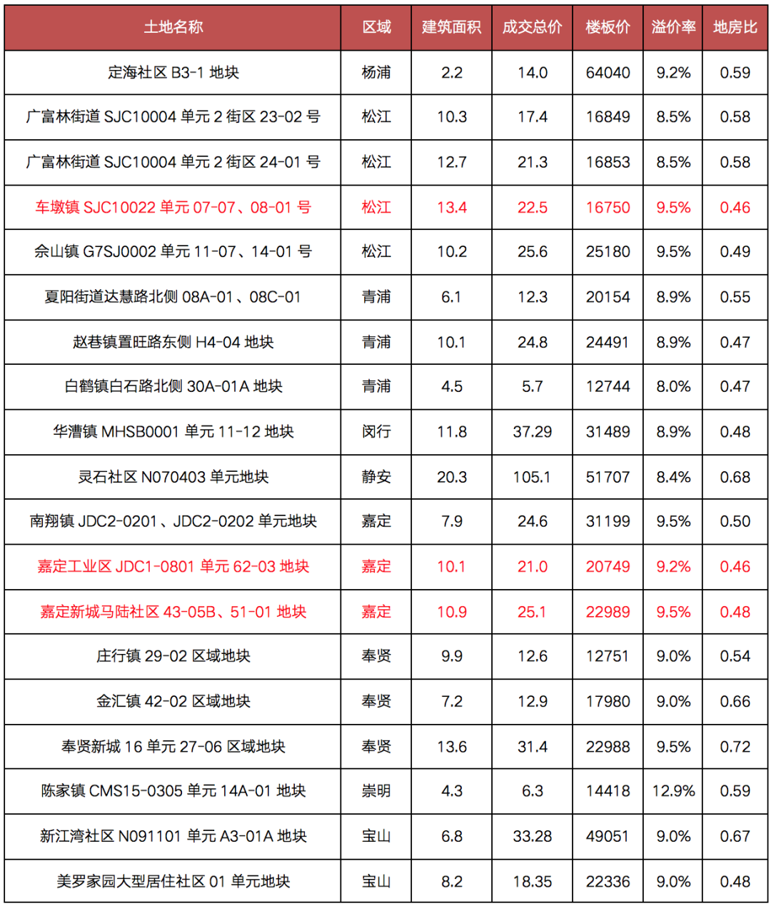 最終,金地華東區域在上海成功斬獲3塊,分別為松江區車墩鎮SJC10022單元07-07、08-01號地塊、嘉定區嘉定新城(馬陸鎮)馬陸社區43-05B、51-01地塊、嘉定區嘉定工業區南門社區JDC1-0801單元62-03地塊,地房比分別為0.46、0.48、0.46,在上海首輪集中供地中處于利潤空間相對較大區間。