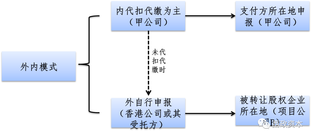 內外模式主要指境內居民向非居民企業或境外自然人轉讓其持有的境內企業股權,被轉讓企業有可能變更為外商投資企業。