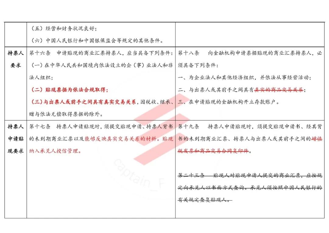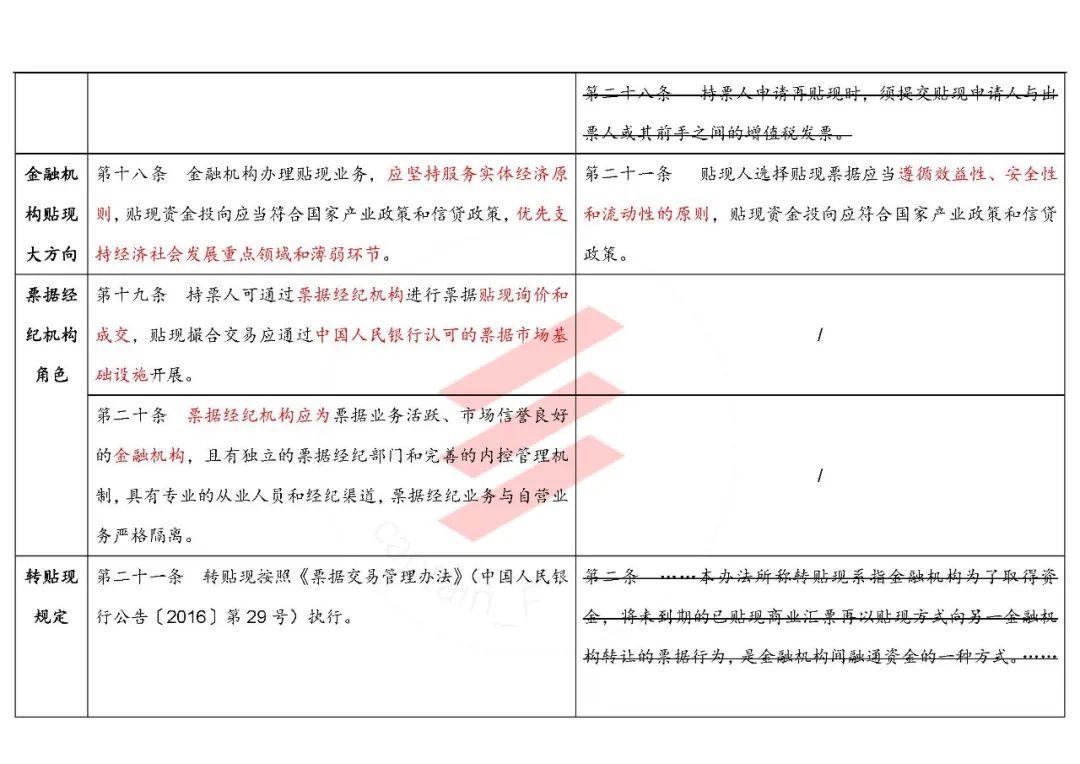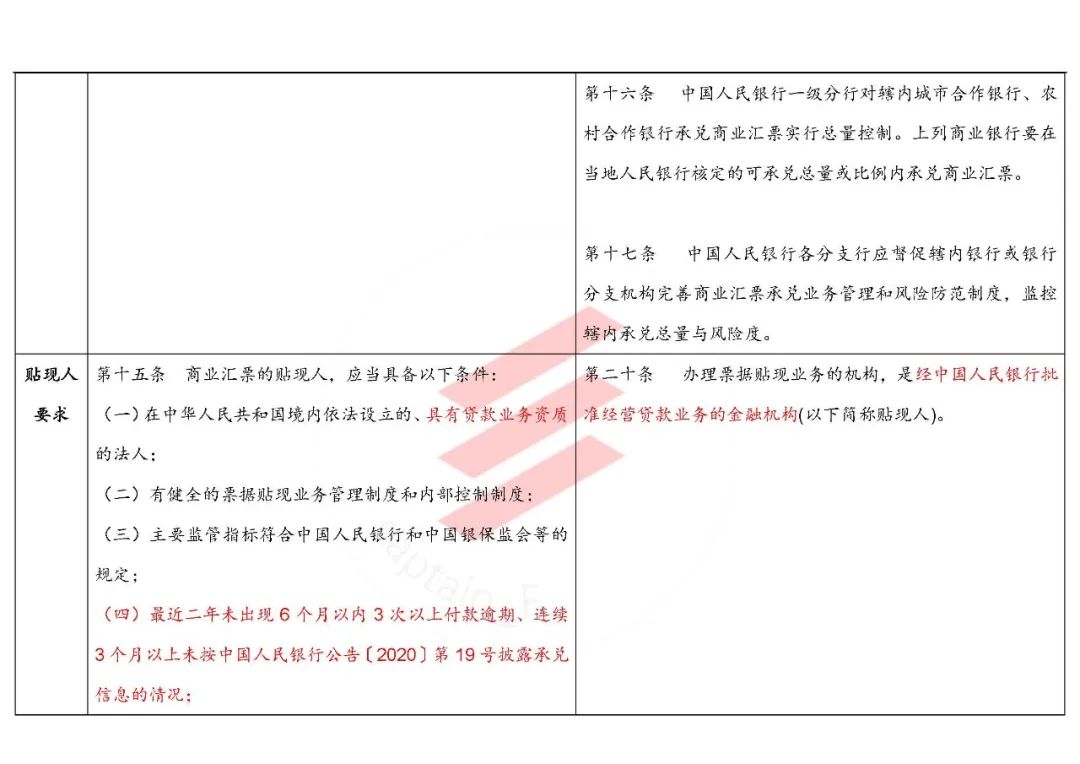 商業匯票承兌、貼現與再貼現管理辦法(征求意見稿)新舊對比