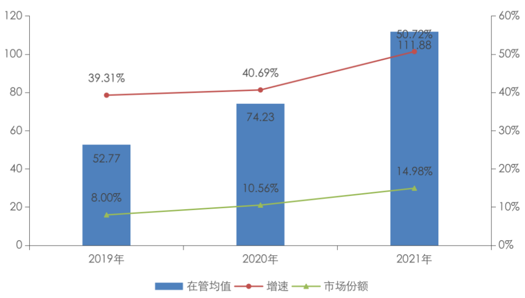 2019-2021年上市物企營業(yè)收入均值、增速及市場份額(億元)