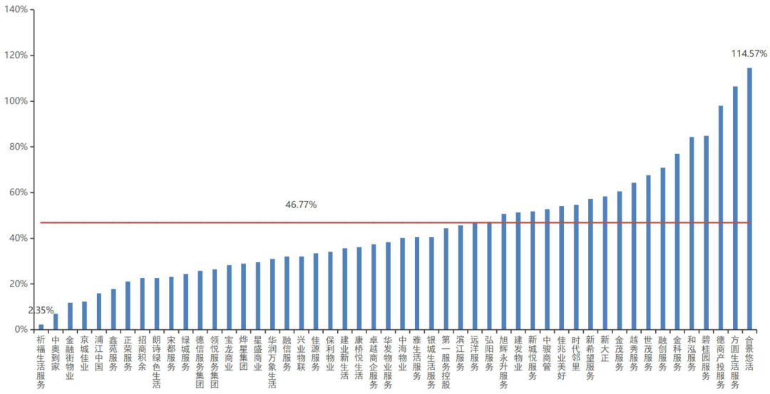 增值服務(wù)毛利率高于基礎(chǔ)物業(yè)服務(wù)毛利率,且社區(qū)增值服務(wù)的毛利率更高。其中,佳源服務(wù)基礎(chǔ)物業(yè)服務(wù)毛利率最高,達30.37%,濱江服務(wù)社區(qū)增值服務(wù)毛利率最高,為71.31%,建業(yè)新生活非業(yè)主增值服務(wù)毛利率最高,達49.64%。