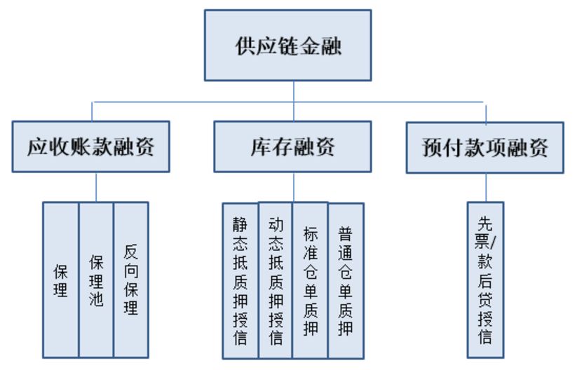 我們知道企業(yè)的經(jīng)營環(huán)節(jié),主要是采購、生產(chǎn)和銷售環(huán)節(jié),在這些環(huán)節(jié)中就必然會有上下游企業(yè)之分。在整個鏈條中,因為有的上下游企業(yè)資金緊張,從而導(dǎo)致供應(yīng)商供不上貨,經(jīng)銷商賣不出去庫存,從而形成大量的預(yù)付款或者應(yīng)收款,以及產(chǎn)品庫存,整個鏈條的轉(zhuǎn)動變慢甚至停滯,影響到一些有一定市場地位的核心企業(yè)。那么圍繞這些大的核心企業(yè),根據(jù)整個鏈條的轉(zhuǎn)動節(jié)點,設(shè)計出一些金融解決方案,幫產(chǎn)業(yè)鏈上的企業(yè)紓困解難。大體來說供應(yīng)鏈金融主要有以下幾種模式。