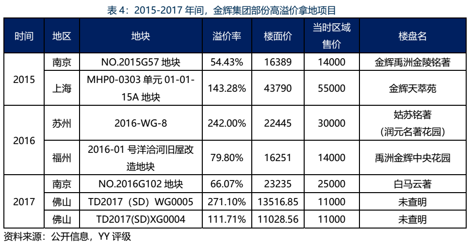 而業務較為單一的金輝集團亦如是。除了即將面對15年和16年高溢價拿地所帶來的壓力外,金輝沒有足夠的勾地手段壓低拿地成本,迫使其直面純住宅(含商業配套用地)項目凈利遭到擠壓難題。