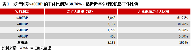 確定高收益?zhèn)J(rèn)定標(biāo)準(zhǔn)為發(fā)行利差>400BP